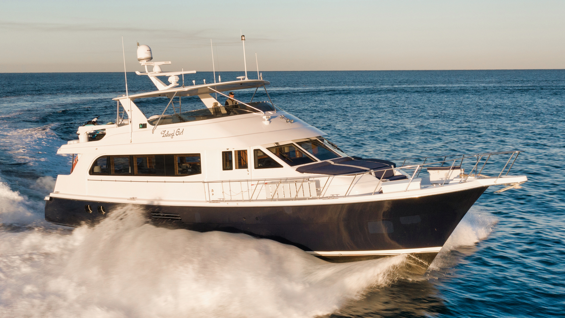 On the flybridge, a newly added granite island provides additional workspace and entertainment functionality, complete with integrated storage, a hardtop, and a pop-up TV. The vessel is now equipped with Starlink high-speed Wi-Fi, ensuring seamless internet connectivity while underway or at anchor.