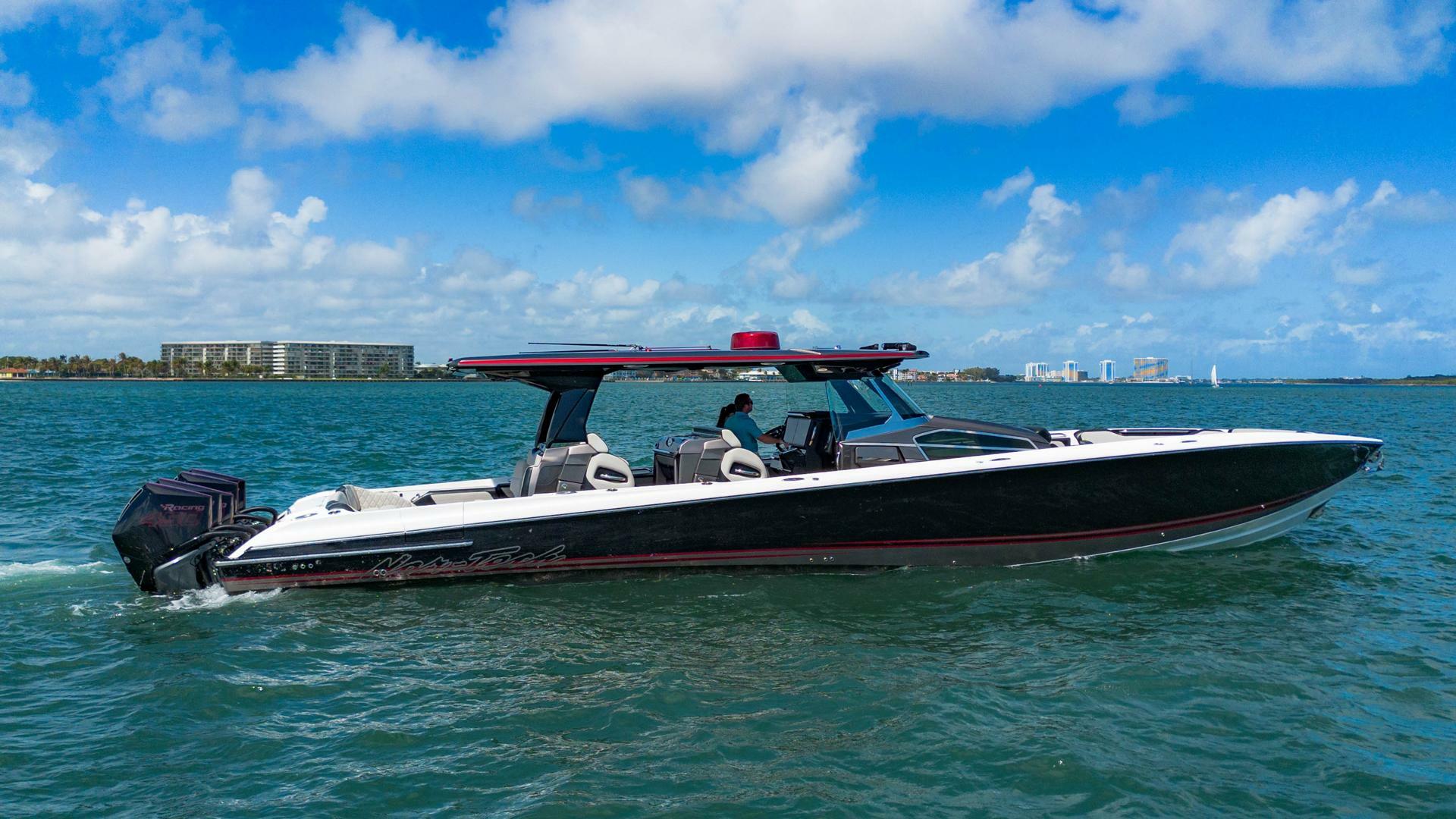 The 2023 Nor-Tech 500 Sport exemplifies the brand's dedication to excellence, blending performance, style, and craftsmanship seamlessly. This 50ft, 28,000lbs vessel boasts advanced technology and design, ensuring a top-tier boating experience with its agility and speed. Designed for both relaxation and high-speed water activities, it features a spacious bow, generous seating and is equipped with Quint Mercury Racing 450 V8 engines and Sportmaster Gearcases for racing. Prepare to be captivated by the Nor-Tech 500 Sport. This high-performance cruiser redefines luxury and performance, with a replacement cost exceeding $2.2 million. Its sheer magnificence leaves everyone in awe.